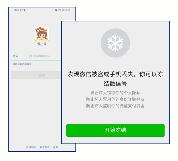 我们可以借用别人的手机,通过微信APP来冻结账户,点击登陆界面下方的“紧急冻结”,输入相关的信息完成冻结操作。